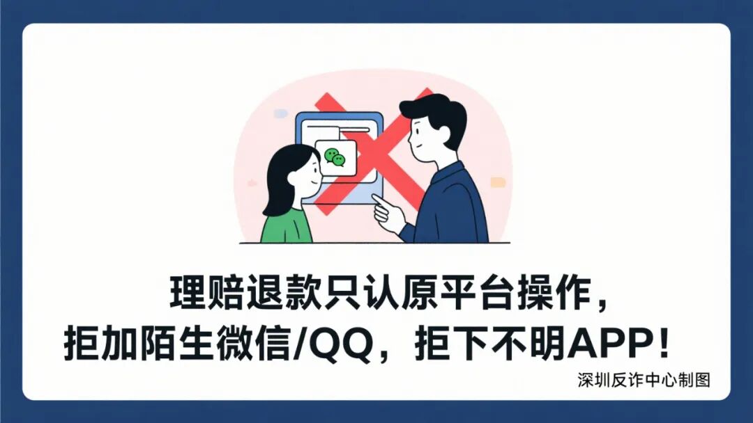 ? 防骗要点:四“不”一“打”!- 不脱离官方! 理赔退款只认原平台操作,拒加陌生微信/QQ,拒下不明APP!