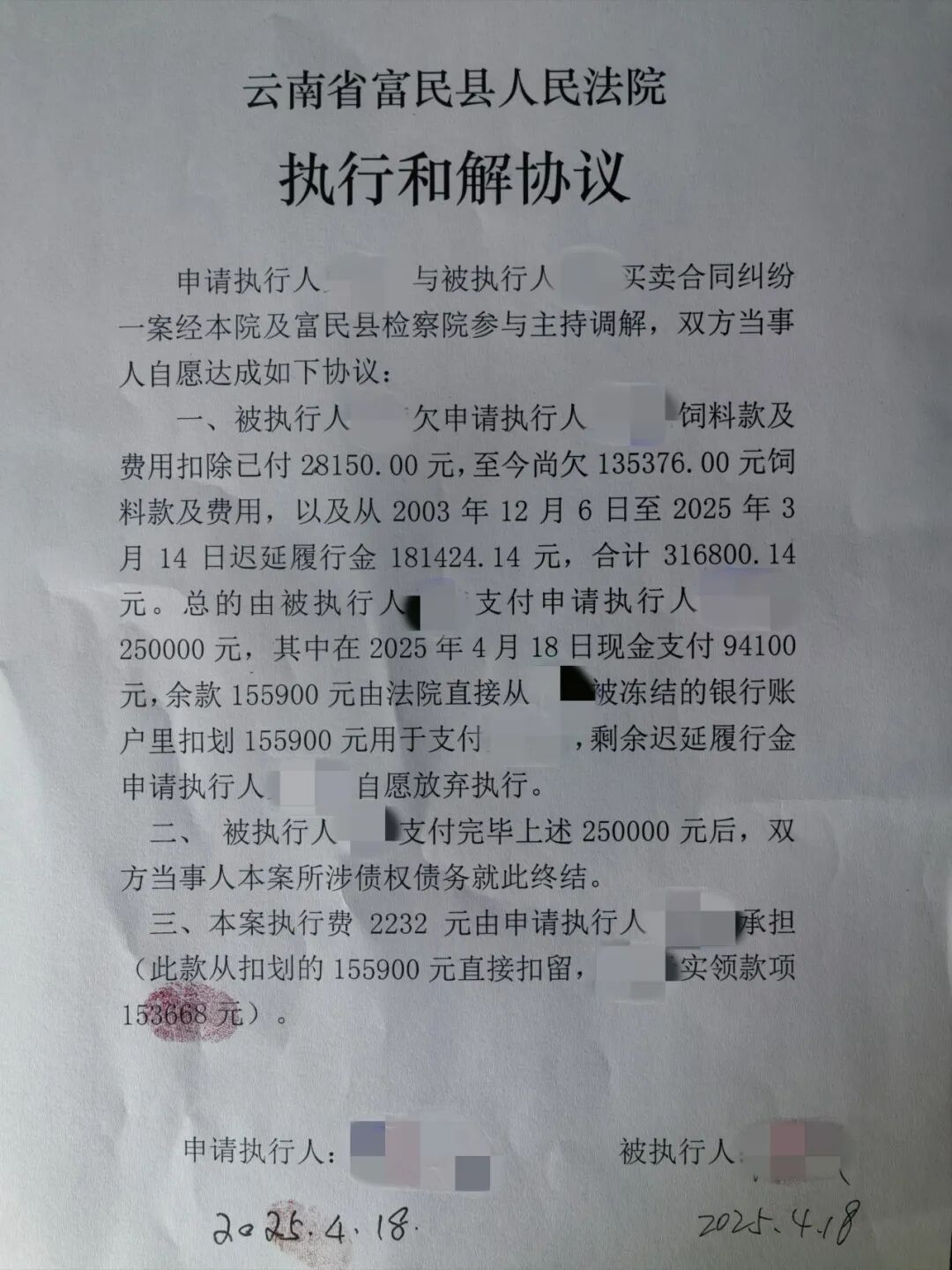 检察官抓住调解契机,联合执行法官制定了详细的和解方案,多次组织双方“面对面”沟通、“背对背”工作,从亲情伦理谈到法律责任,从现实利益讲到长远影响,唤起他们对往昔和睦相处的回忆,用换位思考的方式,引导双方理解彼此的立场,并劝诫他们“忍一时风平浪静,退一步海阔天空。”最终,杨某同意一次性支付25万元解决纠纷,史某同意放弃部分迟延履行金。2025年4月18日,当二人在执行和解协议上签字后,两人的手终于在跨越23载岁月握在一起。