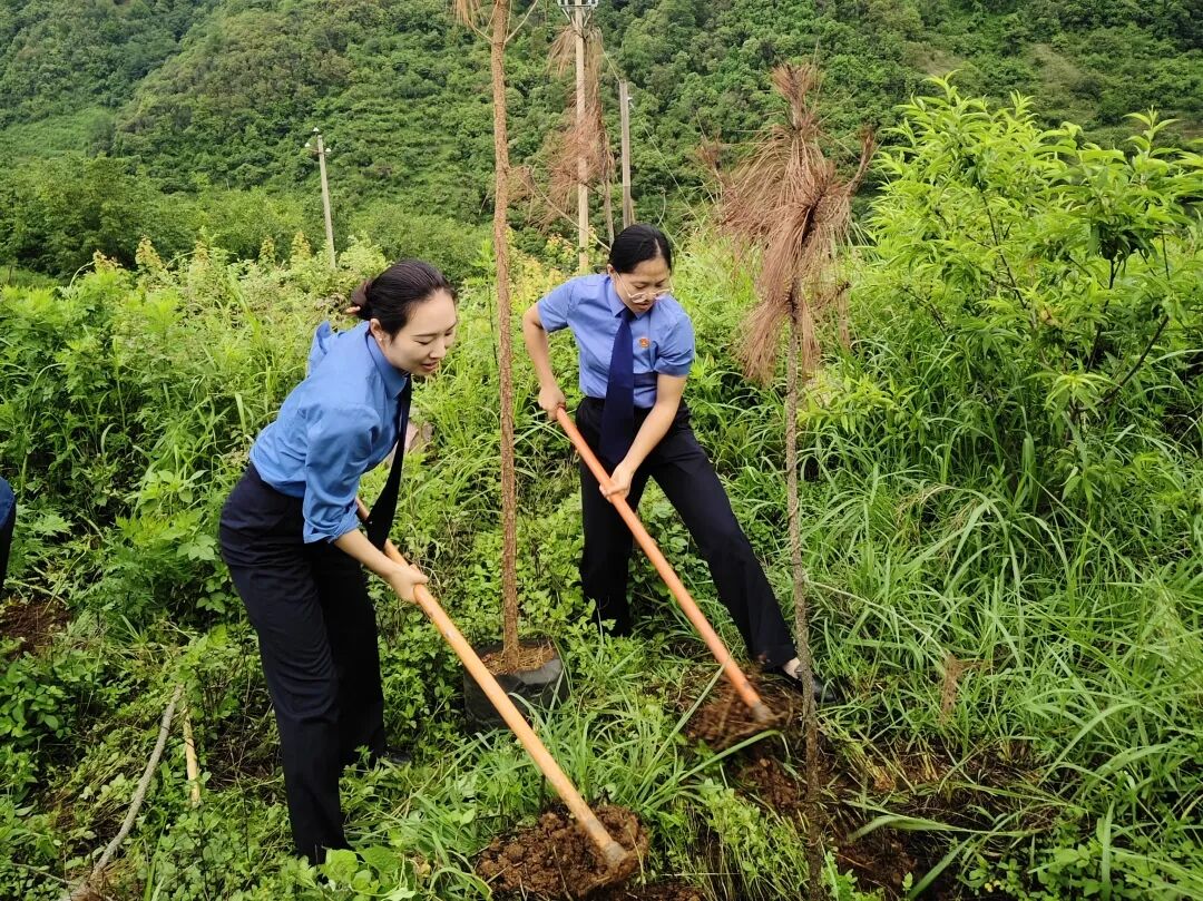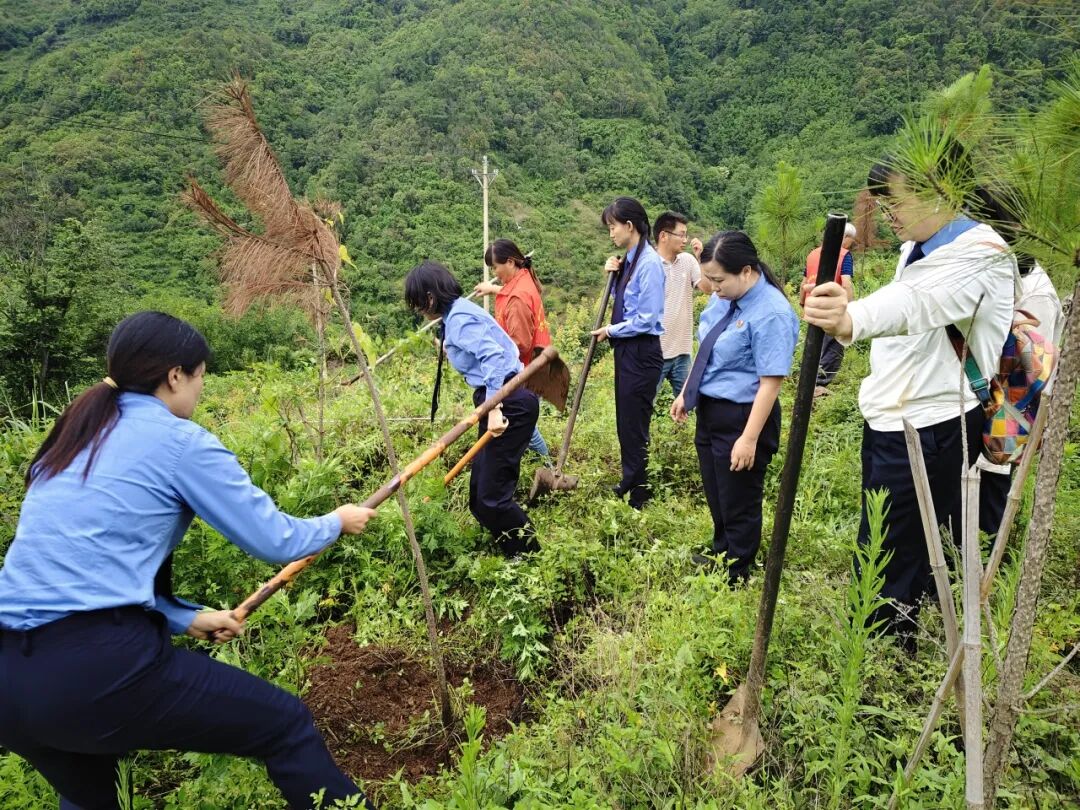 在植树现场,大家分工协作,挥锹铲土、扶苗浇水,合力栽下一株株树苗,为乡村增添新绿,并开展巡河行动,检查河道水质情况及沿岸环境。