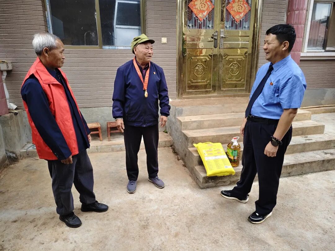 党课结束后,党员干部走访慰问了石板沟村、西核村的贫困老党员,与他们亲切交谈,详细了解其生活状况和实际困难,并送上慰问品和节日祝福。
