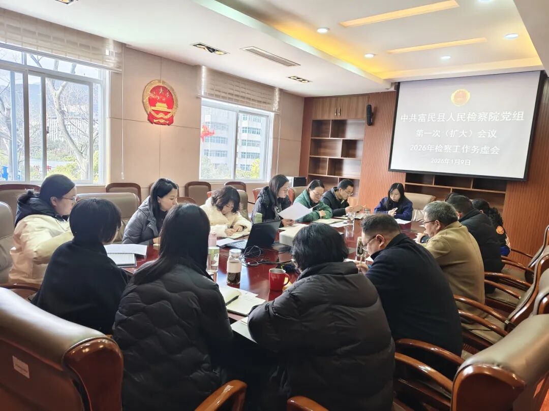1月9日,富民县检察院召开党组(扩大)会议,研究部署2026年工作。会议由党组书记、检察长马祥芬主持,分管领导、部门和条线负责人参加会议,就条线工作复盘问题短板,为推进新一年检察工作高质量发展厘清问题、统一思想、凝聚合力。 会上,马祥芬检察长传达学习习近平总书记新年贺词,围绕深刻认识党的二十届四中全会的重大意义、精神实质和准确把握“十五五”时期主要目标,找准检察工作履职点等进行了阐述。同时,全面回顾近年来县检察院工作情况、工作实绩,要求全院干警要以执着追求,乘势而上、接续奋进推进特色化、差异化基层小院建设之路。 要在锚定工作目标不放松上久久为功、持续用力,保持工作质效、工作标准、工作作风“三个不变”,坚定沿着党组既定目标,做实“四精工程”。要把“精”字文章作为富检工作基因,立足“精检善治”一院一品,持续深耕“小案精办”。要着力打造典型案例,提升理论调研能力,推动检察品牌矩阵建设,以每一个工作条线的实干实绩,汇集推动富民检察不断前进发展的坚定步伐。 将“政治上着眼、法治上着力”贯穿检察履职全过程,找准检察工作服务县域经济社会发展的着力点、切入点,保持与党委政府中心工作同频共振,以高质效检察履职助力中国式现代化的富民实践。要围绕市检察院“争排头、创一流”的首善标准,立足省会城市基层检察院的坐标定位,以“苔花绽春”的信心和决心,锐意进取、不懈奋斗创造新业绩。 坚持在实战实训中练精兵、育人才,鼓励年轻干警参与各类业务竞赛、岗位练兵和跨部门实训,在赛中锻炼培育过硬本领。以“理论+素能”两条腿走路,成立年轻干警理论学习小组,以常态化学习提升年轻干警政治领悟力、政治判断力和政治执行力。用好“青蓝研习社”学习平台,持续开展午间课堂、检律共建活动,发挥“老带新”传帮带作用,为培养队伍新生力量“育苗蓄水”。 “不日新者必日退”,新的一年富民县检察院将把成绩沉淀为动力,把短板转化为跳板,把奋斗作为最鲜明的底色,在新的一年接续奋进,推动富民县检察院工作再上新台阶,以高质效检察履职为富民经济社会发展提供更有力的法治保障。